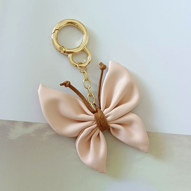 Brelok do kluczy skórzany MOTYL, KOKARDKA różowy BRL367R