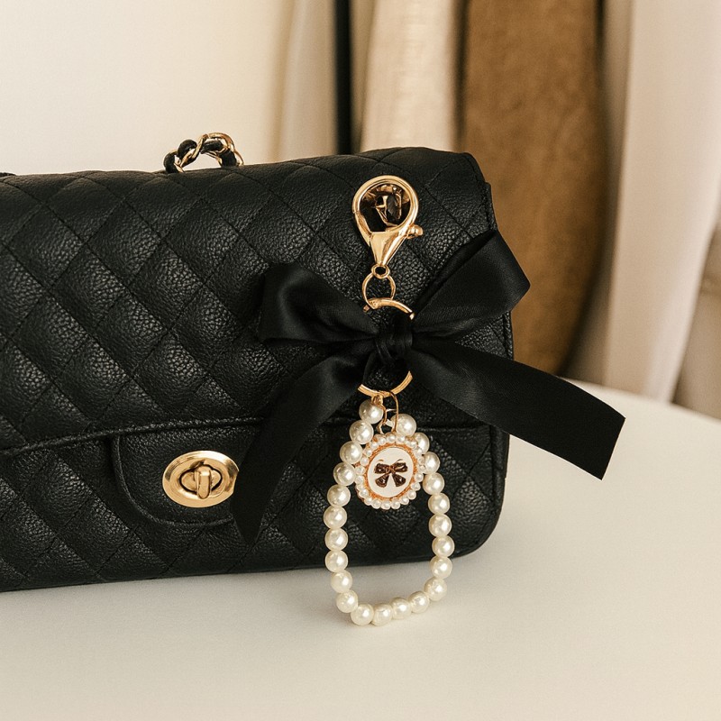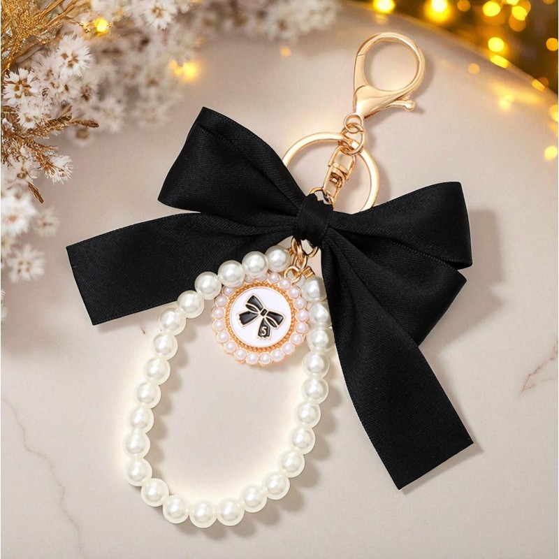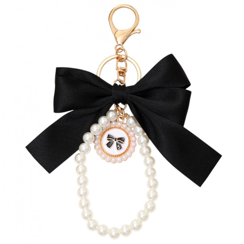 Brelok do kluczy z czarną KOKARDĄ i perłami BRL362CZ