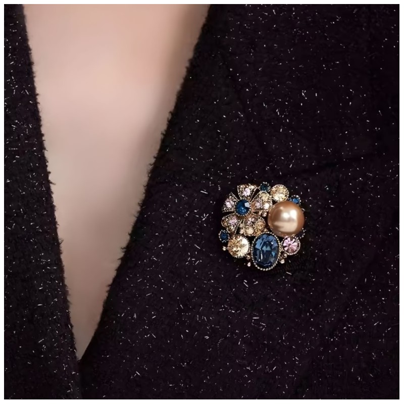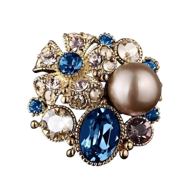 Broszka ozdobna elegancka z brązowymi i niebieskimi kryształkami BZ182