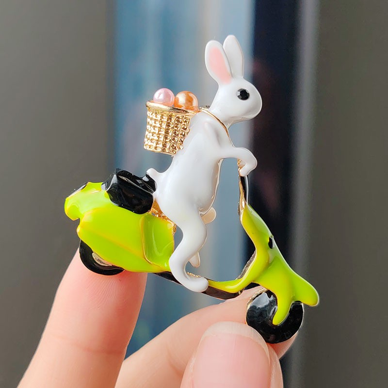Broszka ozdobna króliczek z jajeczkami na skuterze BZ193