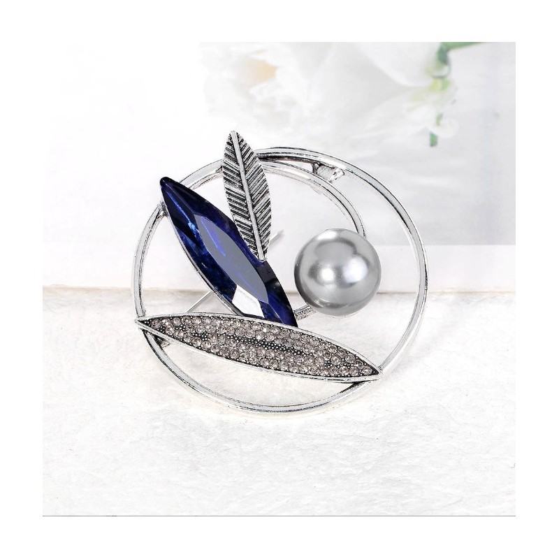 Broszka ozdobna KRYSZTAŁOWA owal navy BZ86