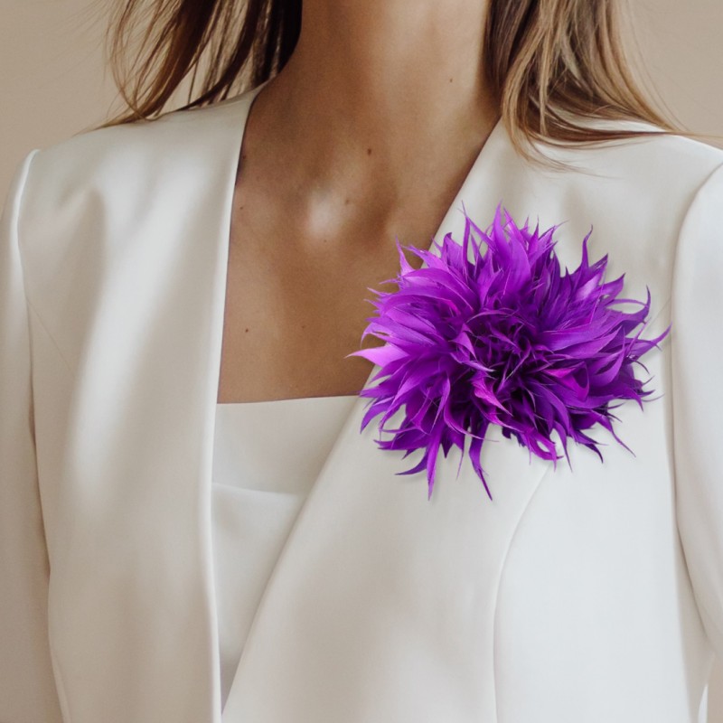 Broszka ozdobna, spinka do włosów 2w1 pióra fiolet BZ207FIO