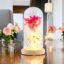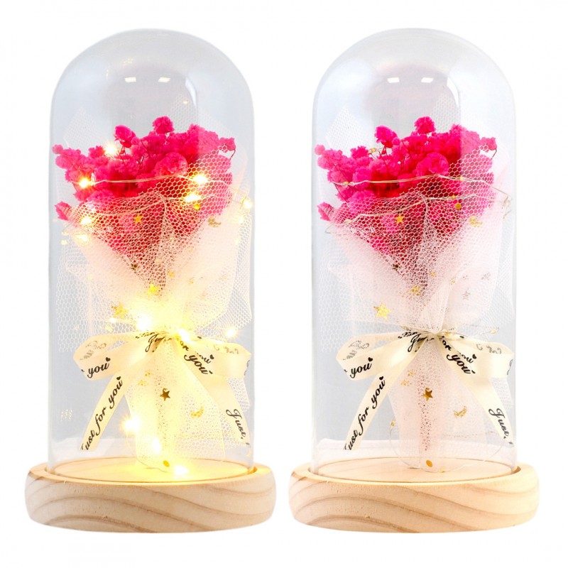 Bukiet z różowej gipsówki pod szklaną kopułą oświetlenie LED ROZ23