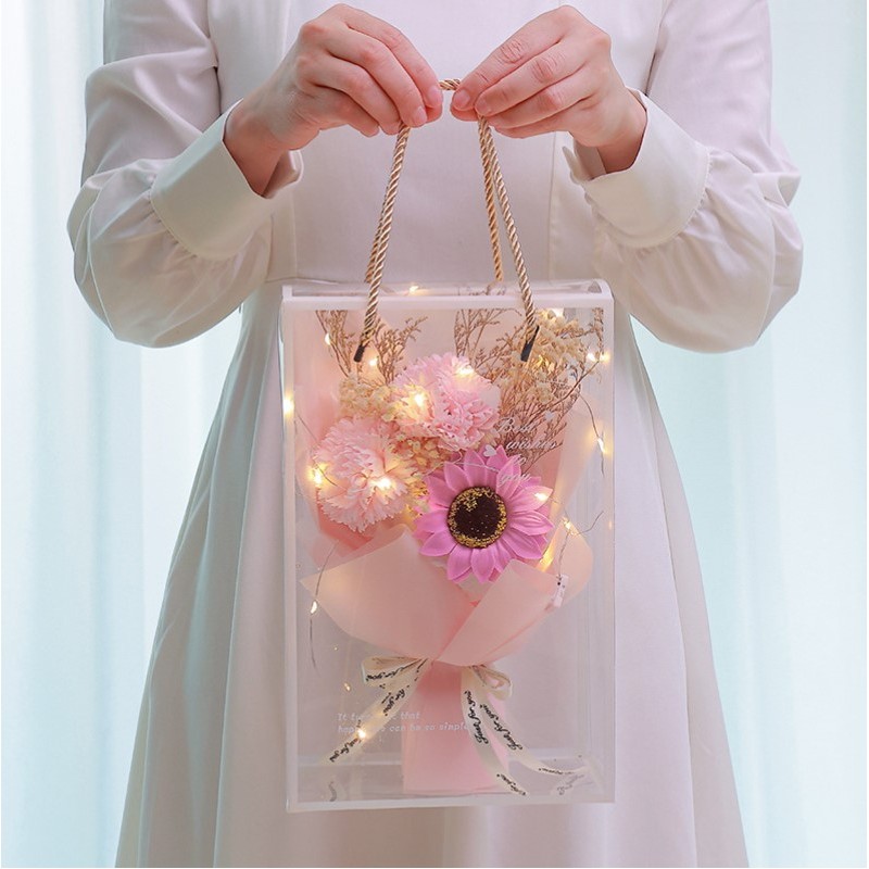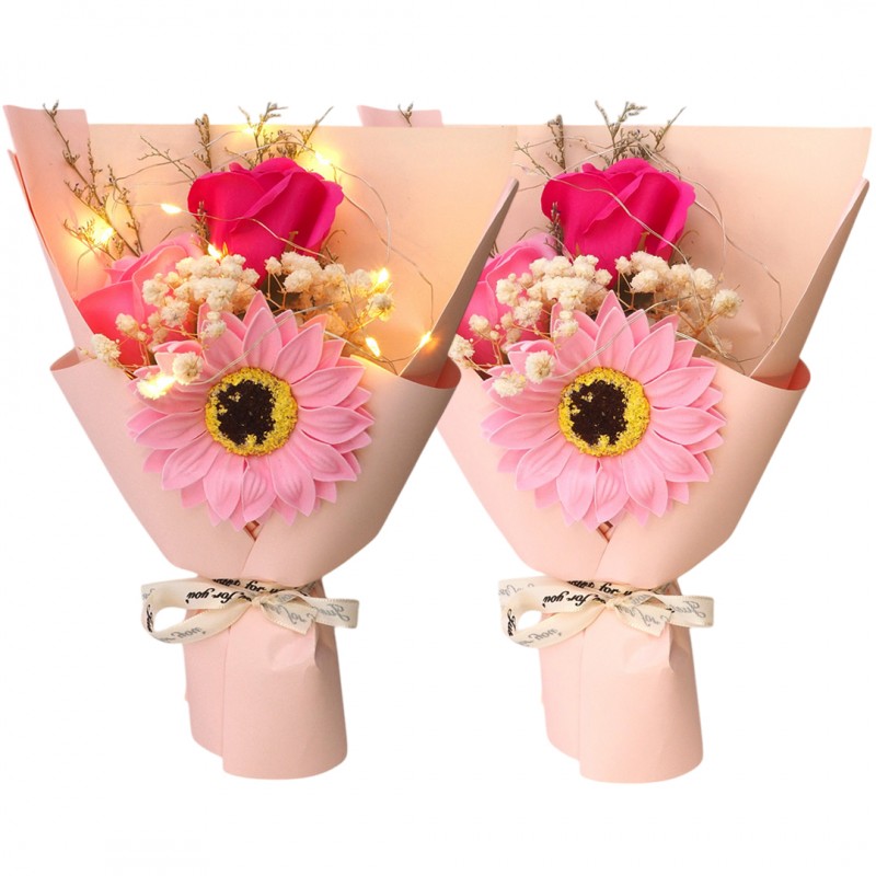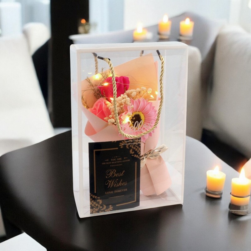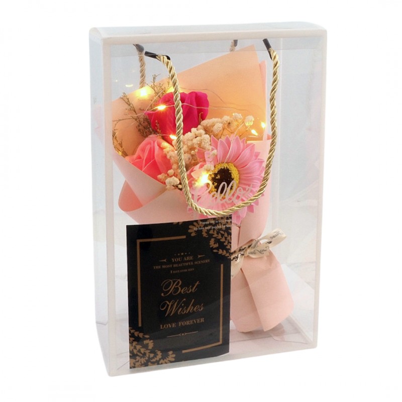 Bukiet zapachowych kwiatów mydlanych w pudełku na prezent, świecące LED BUK07R