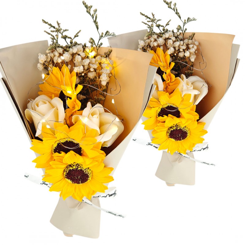 Bukiet zapachowych kwiatów mydlanych w pudełku na prezent, świecące LED BUK15