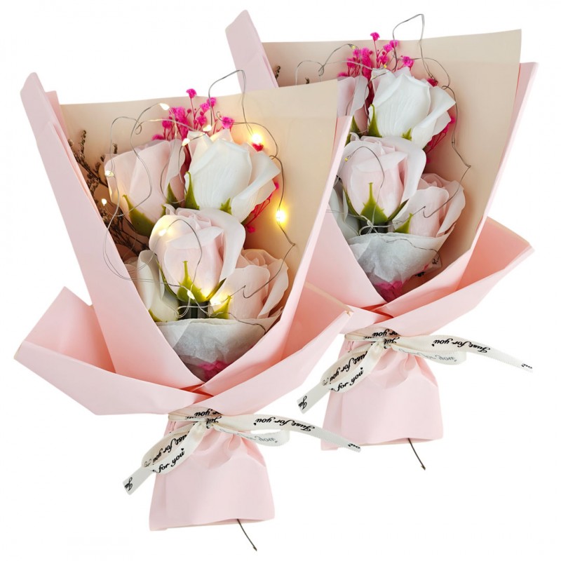 Bukiet zapachowych kwiatów mydlanych w pudełku na prezent, świecące LED BUK16
