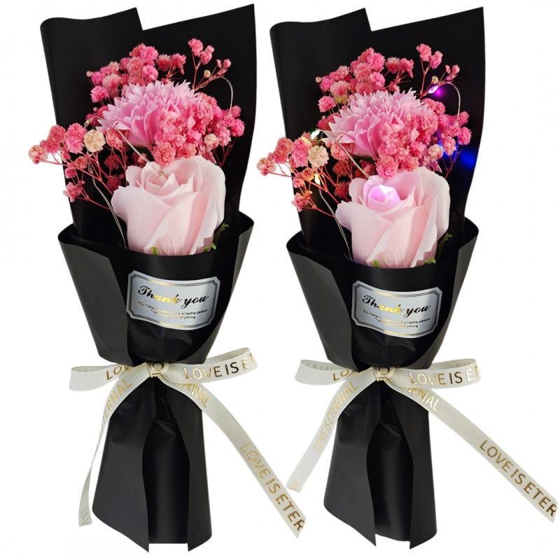 Bukiet zapachowych kwiatów mydlanych w pudełku, róże na prezent, świecące LED BUK08