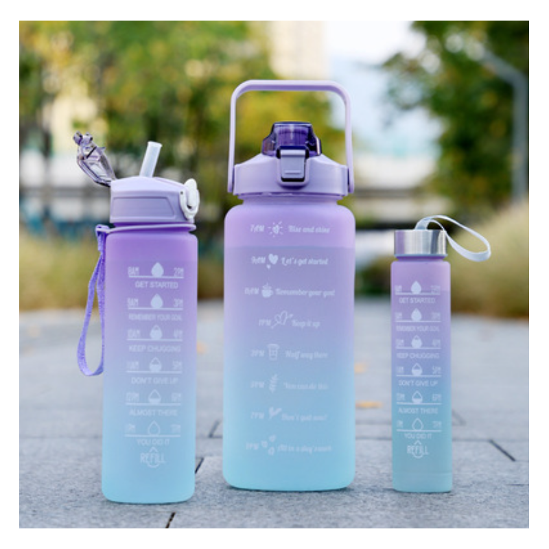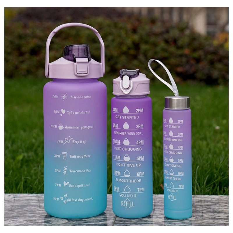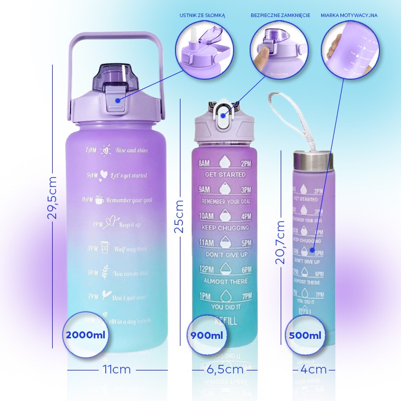 Butelka na wodę Bidon ombre 3w1 z miarką przenośny Zestaw 3 pięknych bidonów na wodę lub inne napoje To świetne rozwiązanie dla osób aktywnych, uprawiających sport.