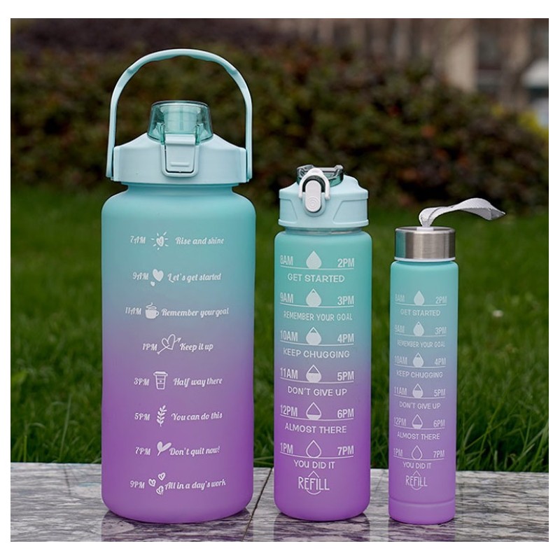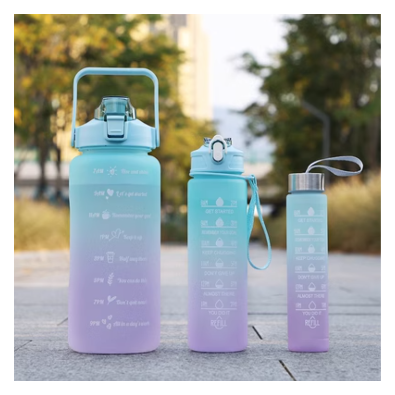 Butelka na wodę Bidon ombre 3w1 z miarką przenośny Zestaw 3 pięknych bidonów na wodę lub inne napoje  To świetne rozwiązanie dla osób aktywnych, uprawiających sport.