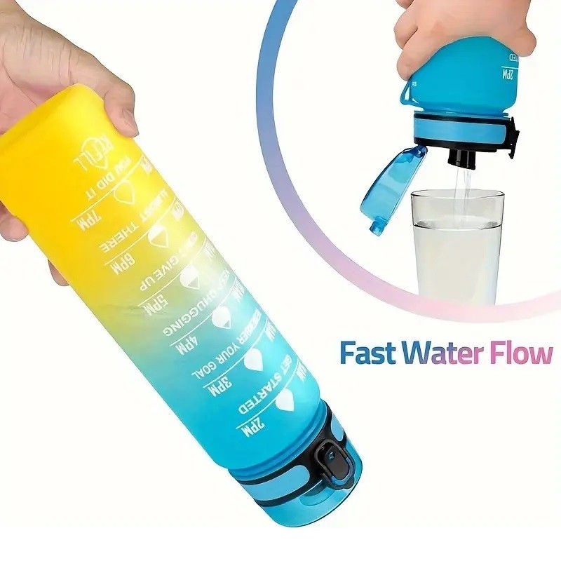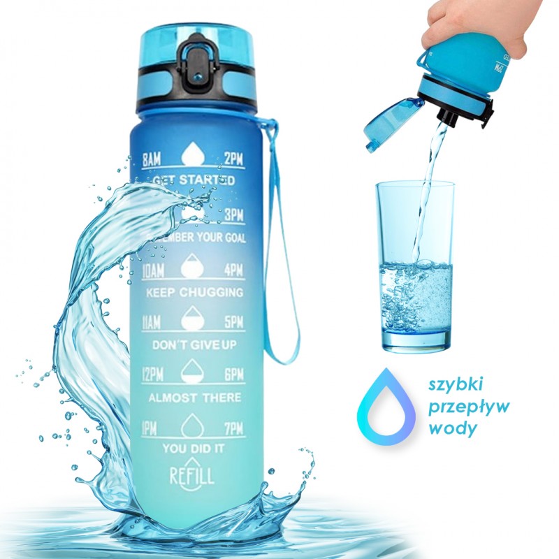 Butelka na wodę, bidon z miarką 1L OMBRE Turkus z Żółtym BD47