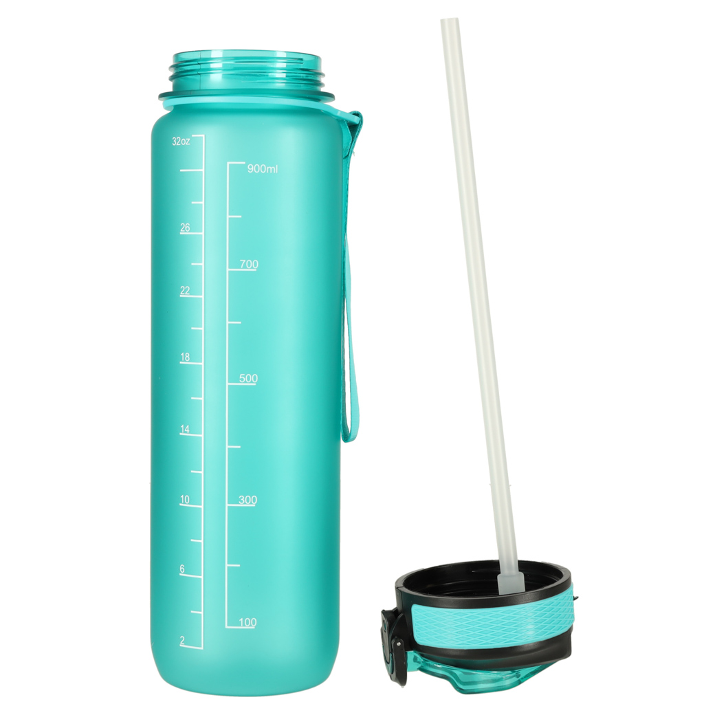 Butelka na wodę bidon ze słomką uchwytem miarką motywacyjną na siłownię BPA free Tritan 1l zielona