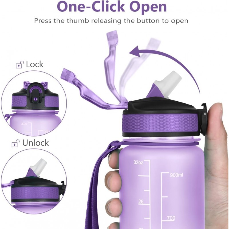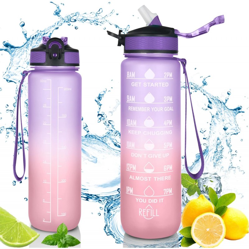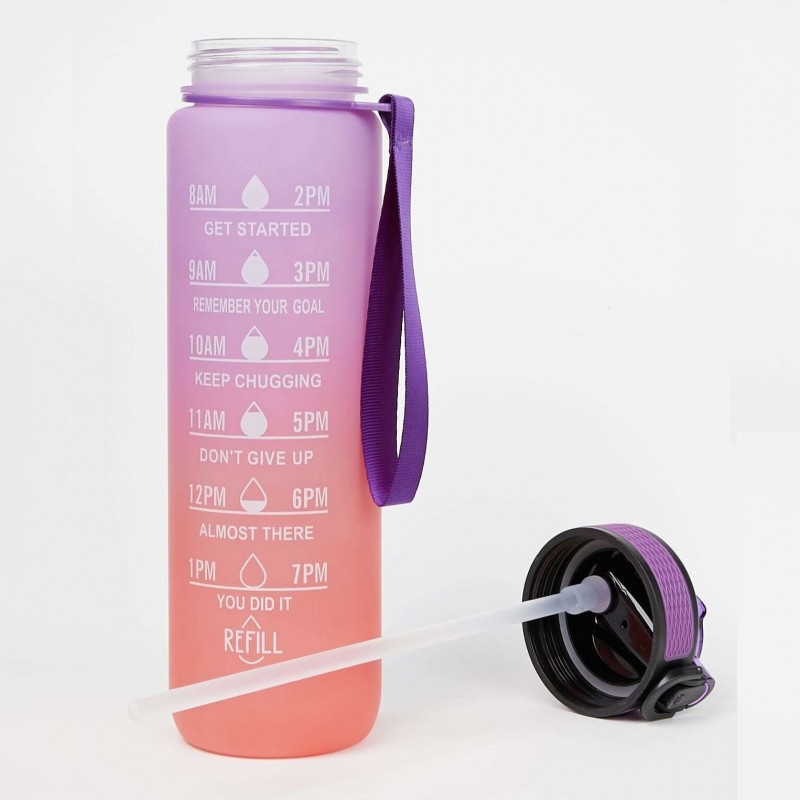 Butelka na wodę z miarką i słomką 1L OMBRE Fiolet z Koralem BD20