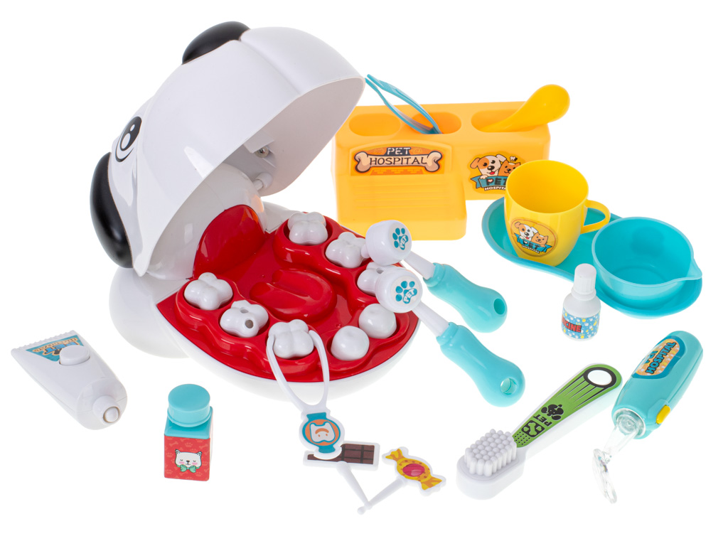 Chory ząbek dentysta zwierząt pies piesek zabawa wylecz zęba nauka weterynarz