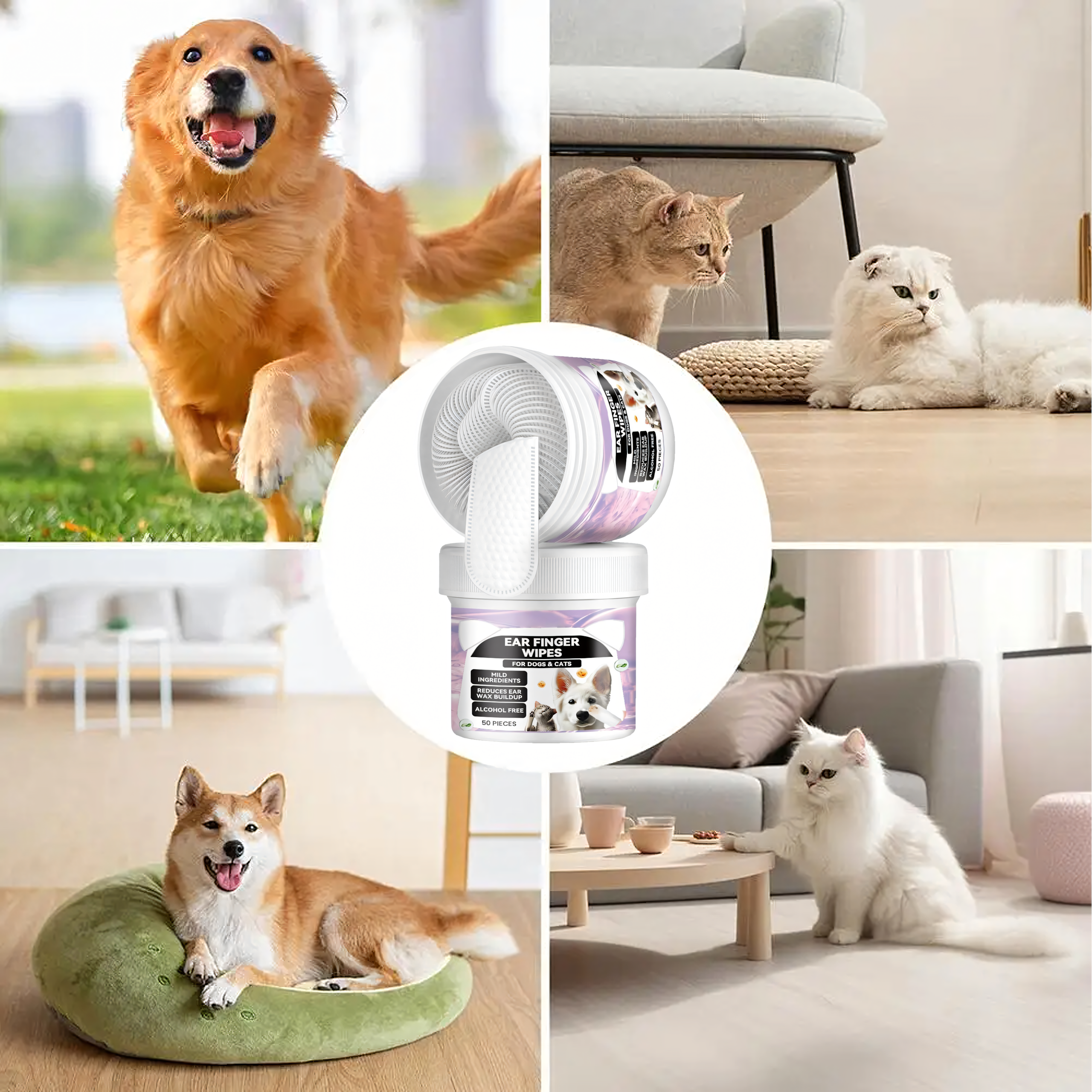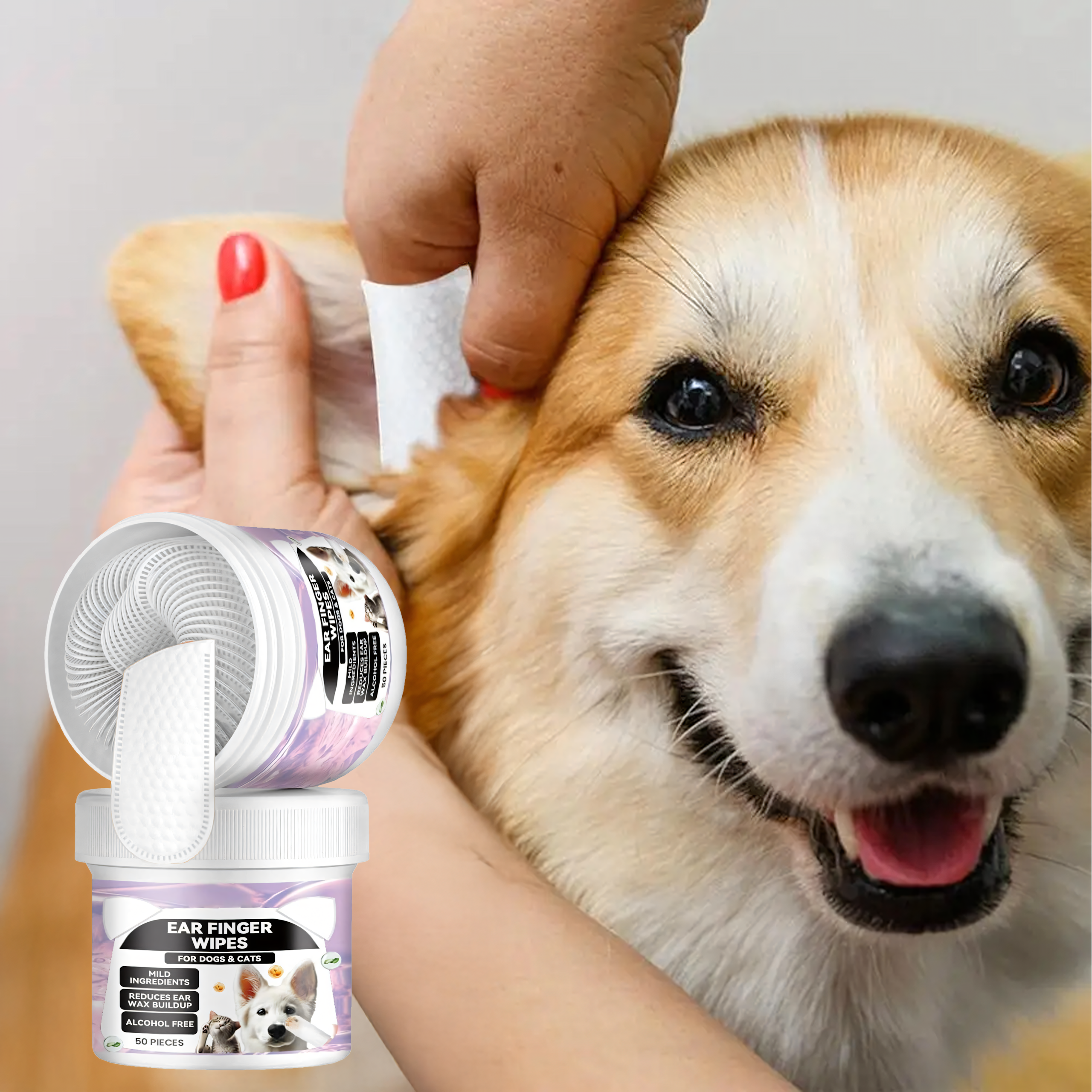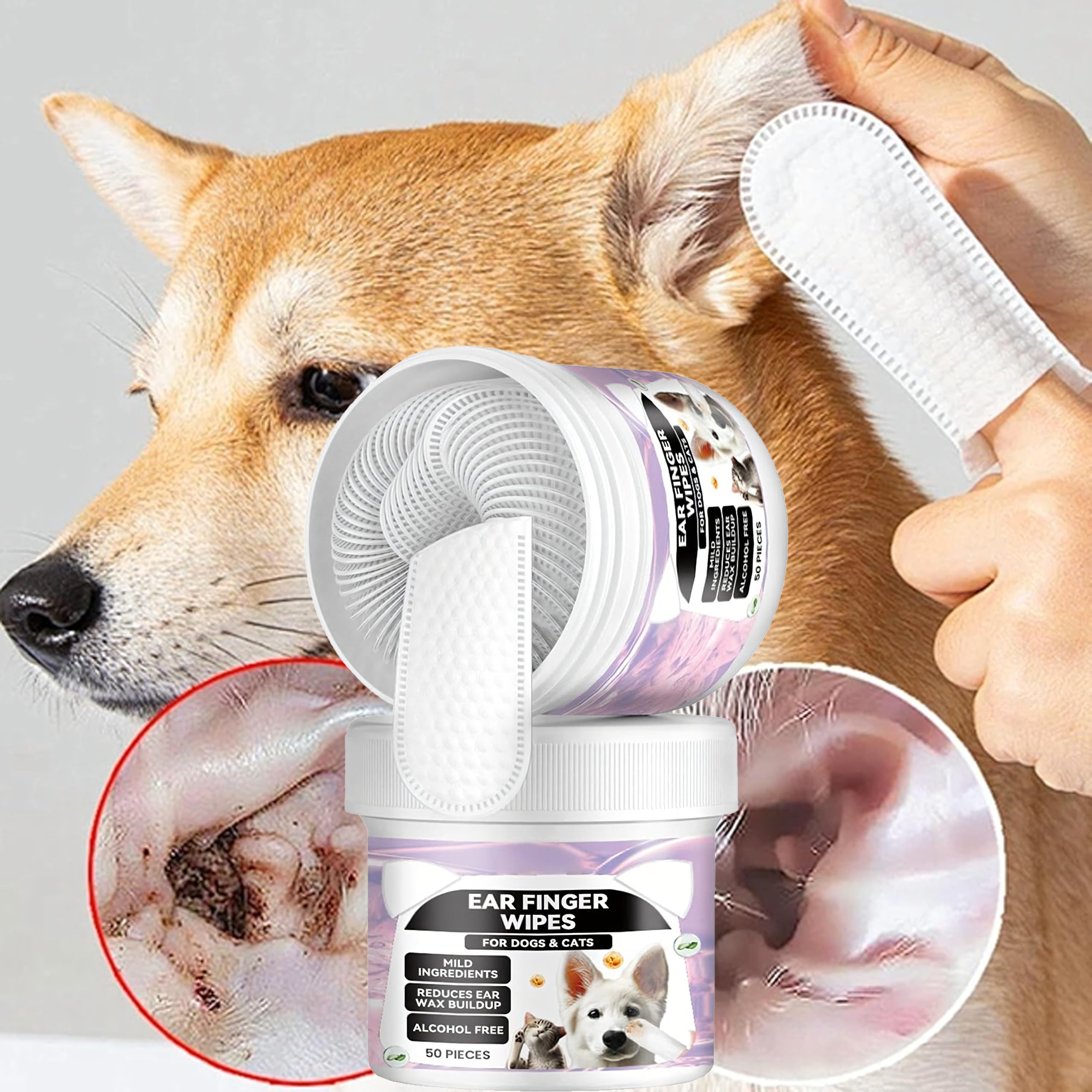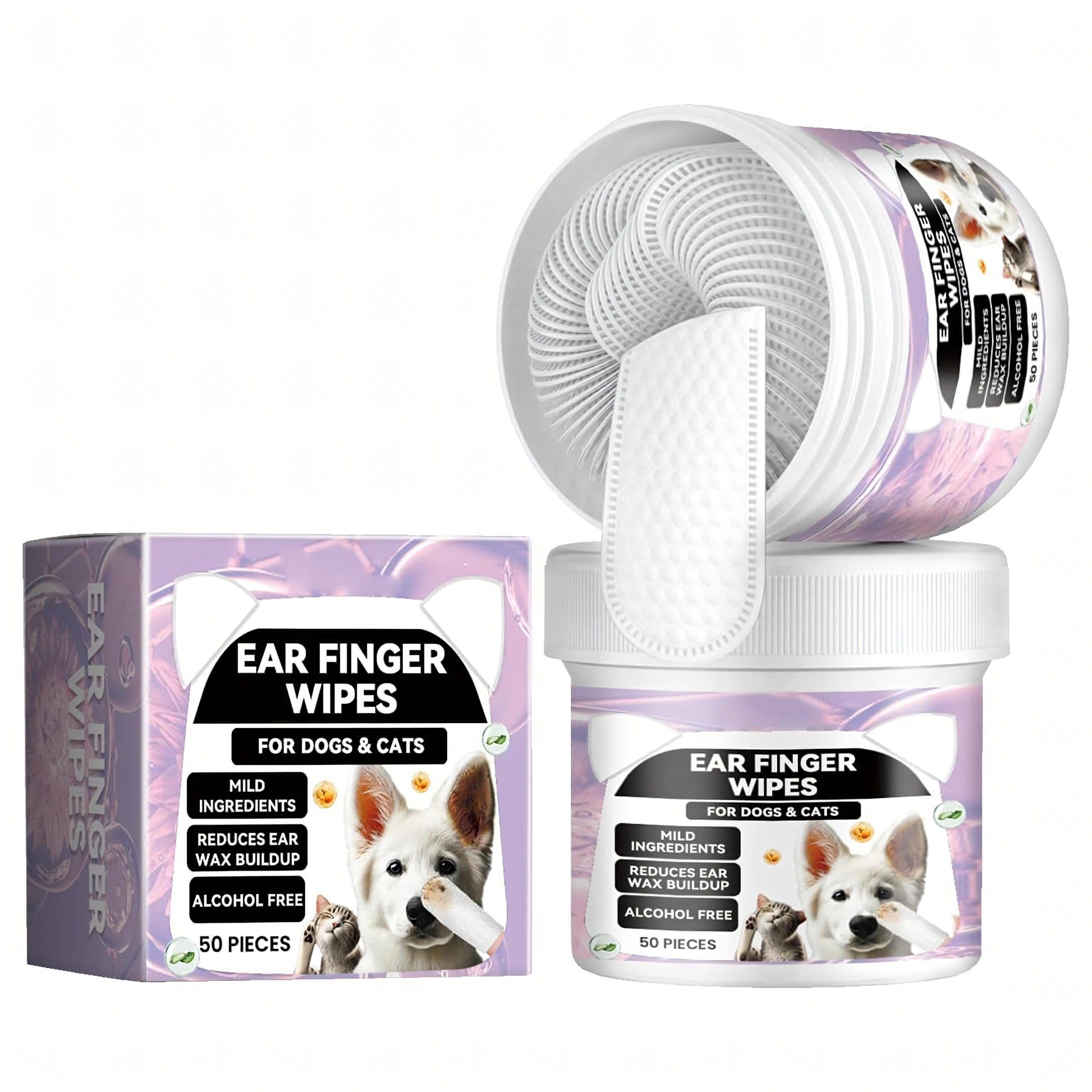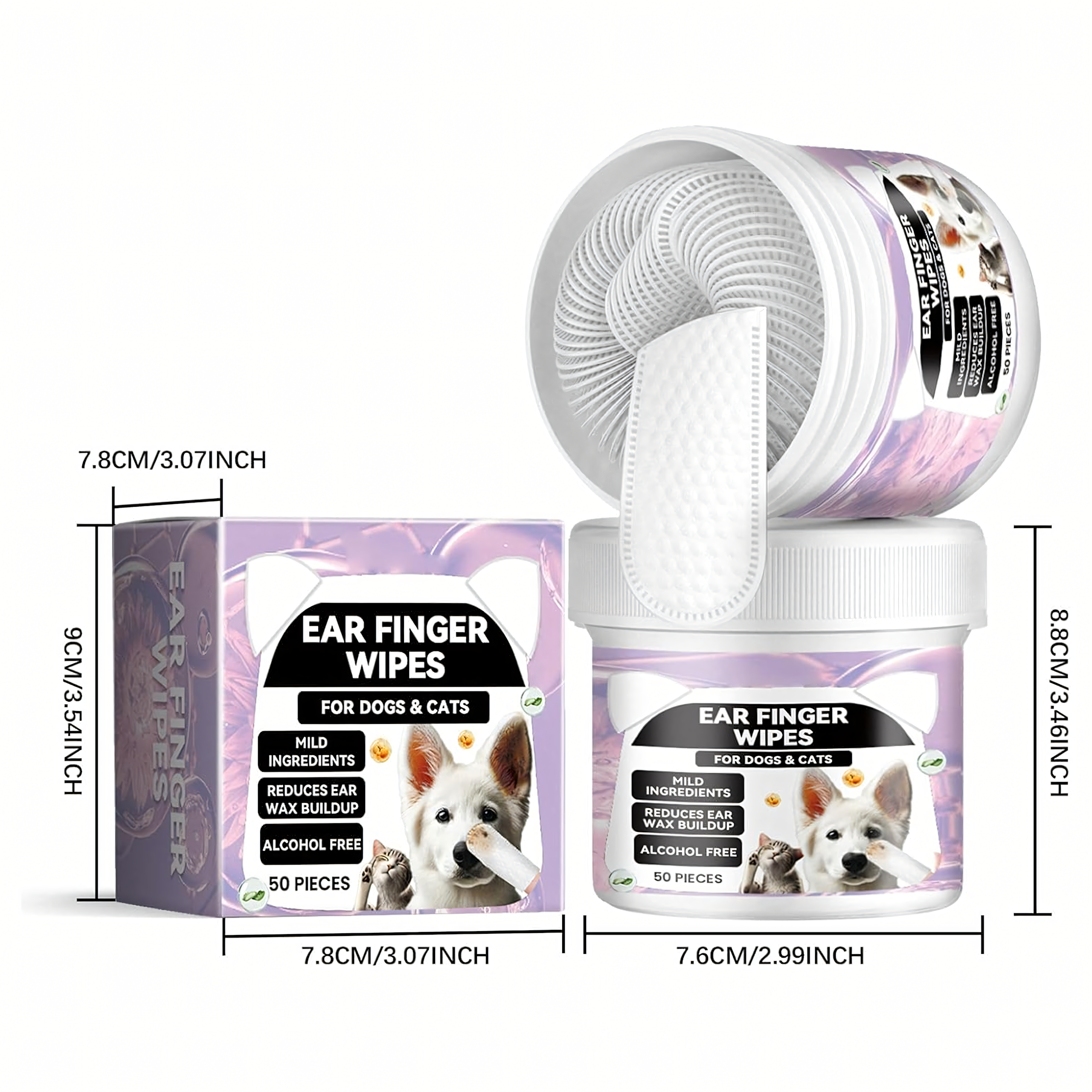 Chusteczki napalcowe do uszu psa i kota (50 szt.) – delikatne, hipoalergiczne i wygodne w użyciu. Skutecznie usuwają woskowinę, tłuszcz i zanieczyszczenia, zapobiegając infekcjom i dbając o zdrowie pupila. Idealne do codziennej higieny w domu i w podróży.