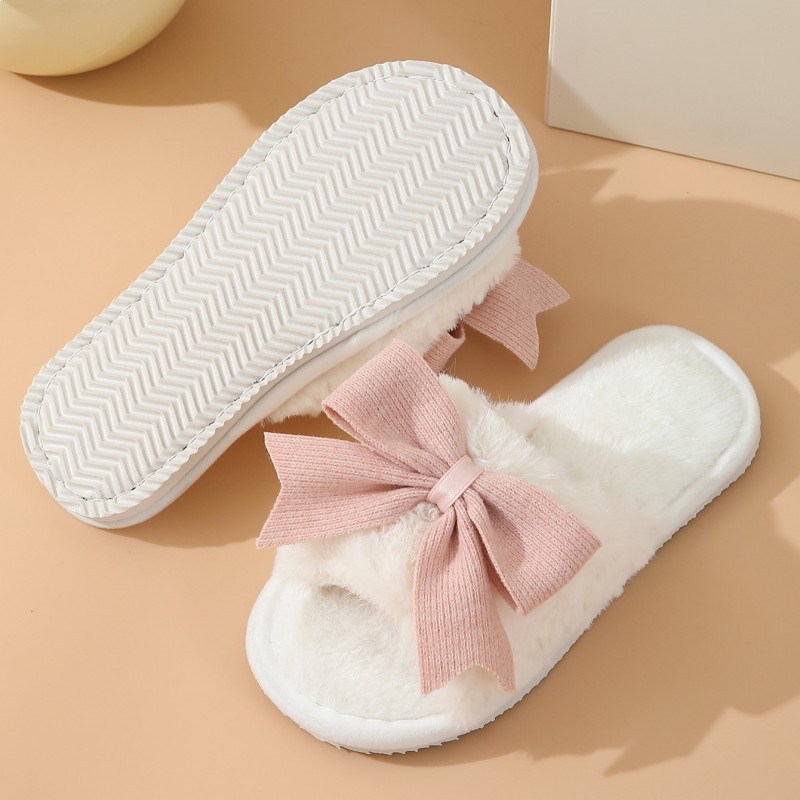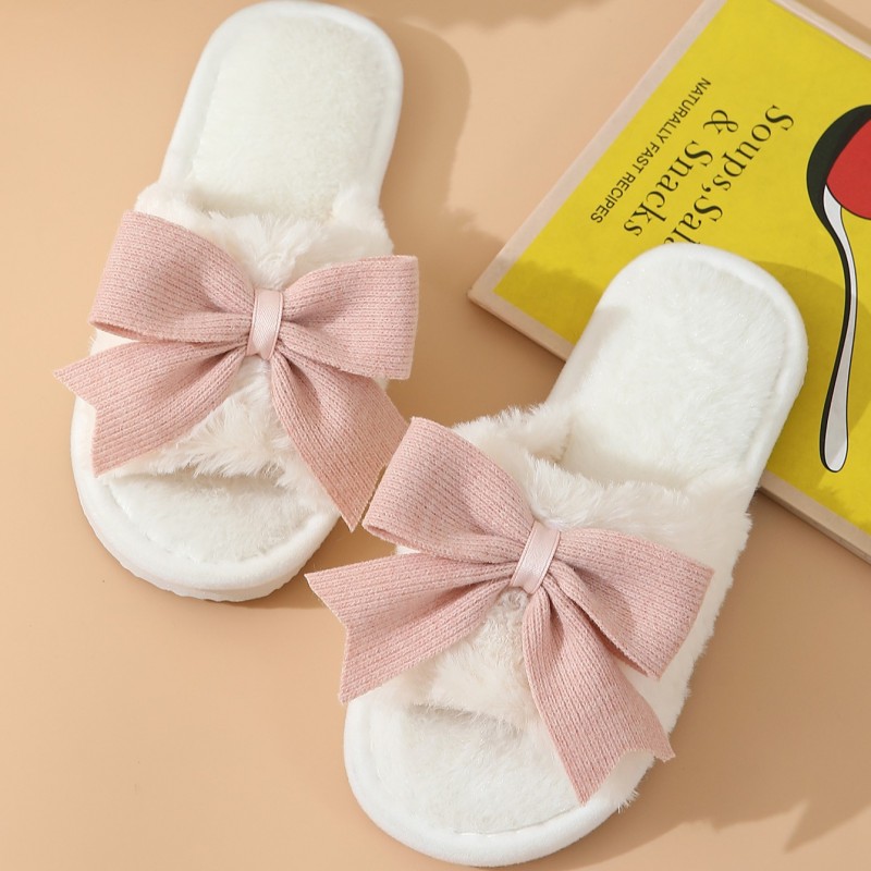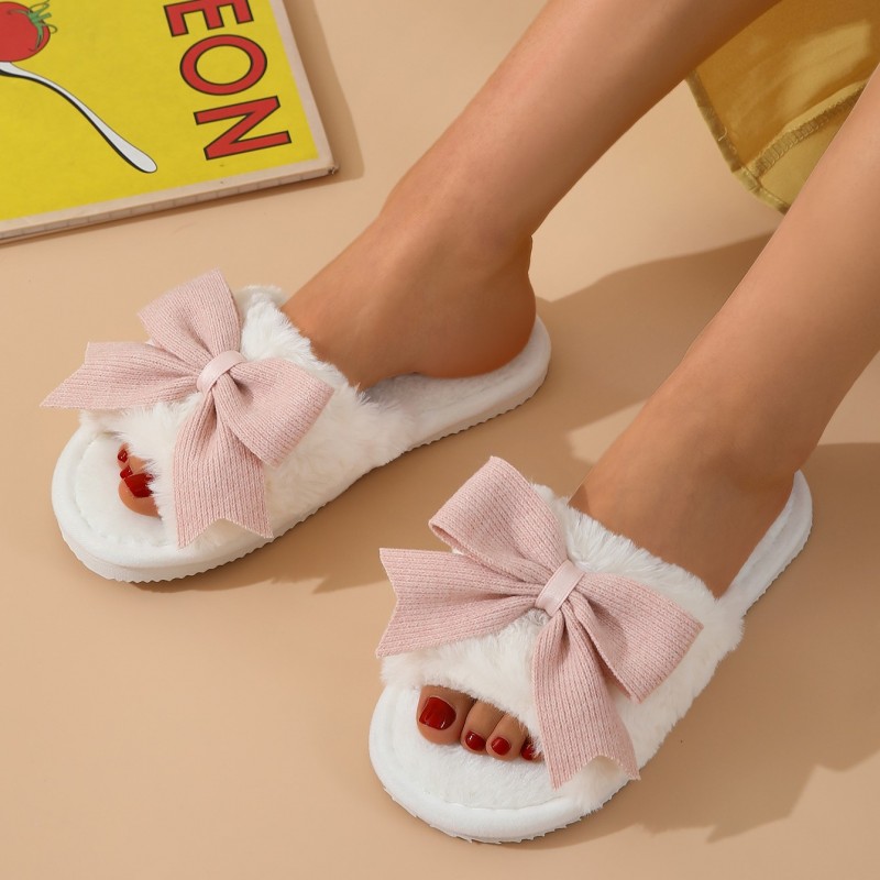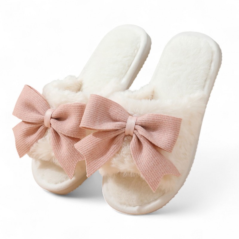 Ciepłe kapcie z kokardą ocieplane, antypoślizgowe PAN06R38, rozmiar 38
