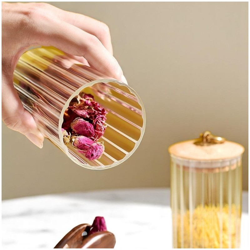 Cukiernica, pojemnik ryflowany z przykrywką bambusowa, rozm. L, 1150 ml 1szt SZK169