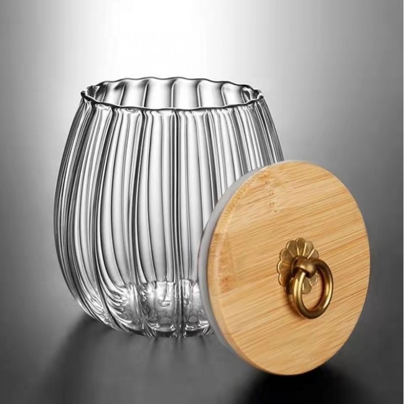 Cukiernica szklana ryflowana 700ml Poznaj elegancką cukiernicę z falowanymi ściankami o pojemności 700 ml – idealny pojemnik na cukier, sól, zioła lub inne produkty.