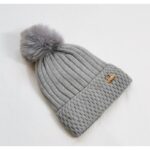 Czapka zimowa dzianinowa, miękka i ciepła, z pomponem i naszywką, kremowa Bardzo ciepła i elastyczna czapka