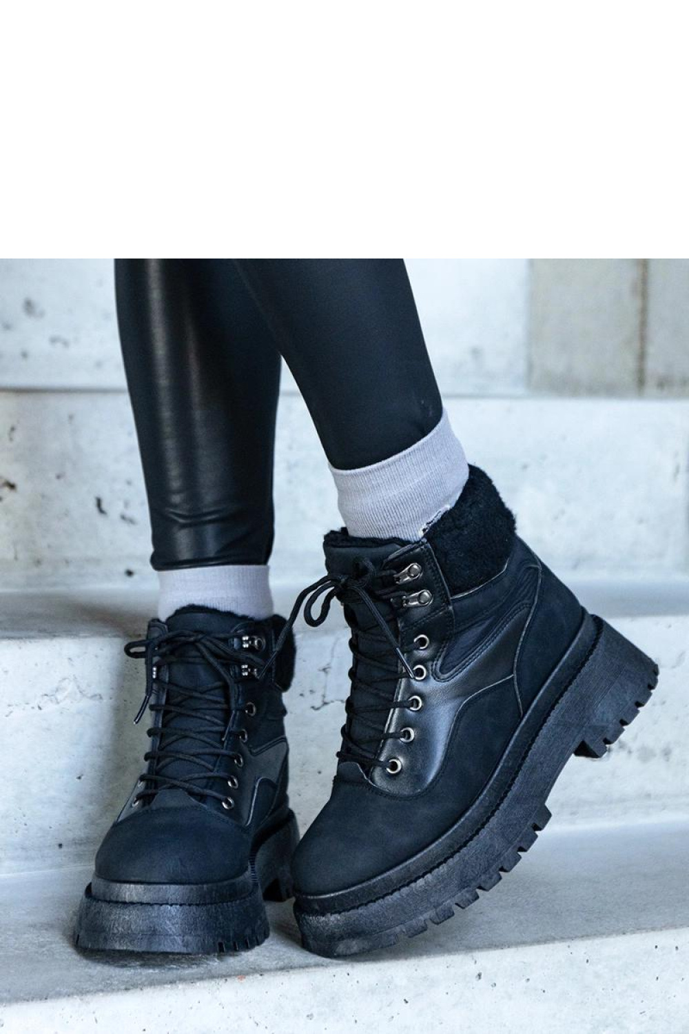 Czarne traperki na grubej podeszwie z futerkiem Best – Solea