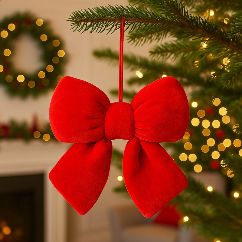 Czerwona kokarda, aksamitna, ozdoba świąteczna 14 x 5cm WOZ41