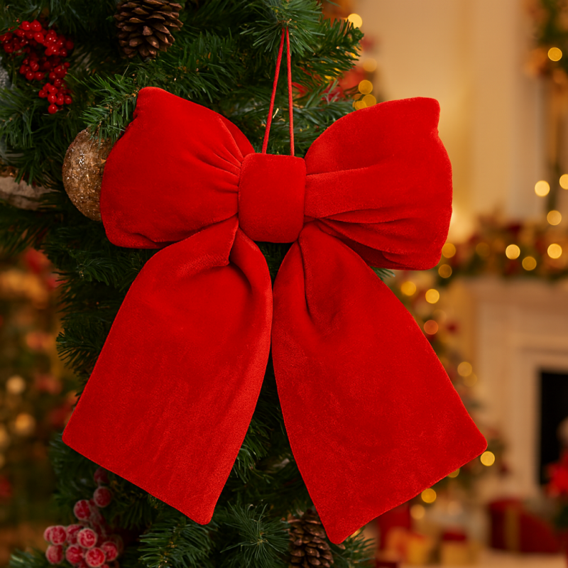 Czerwona kokarda, aksamitna, ozdoba świąteczna 20x20cm WOZ42
