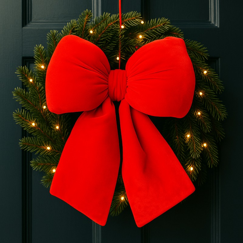 Czerwona kokarda, aksamitna, ozdoba świąteczna 29x33cm WOZ43