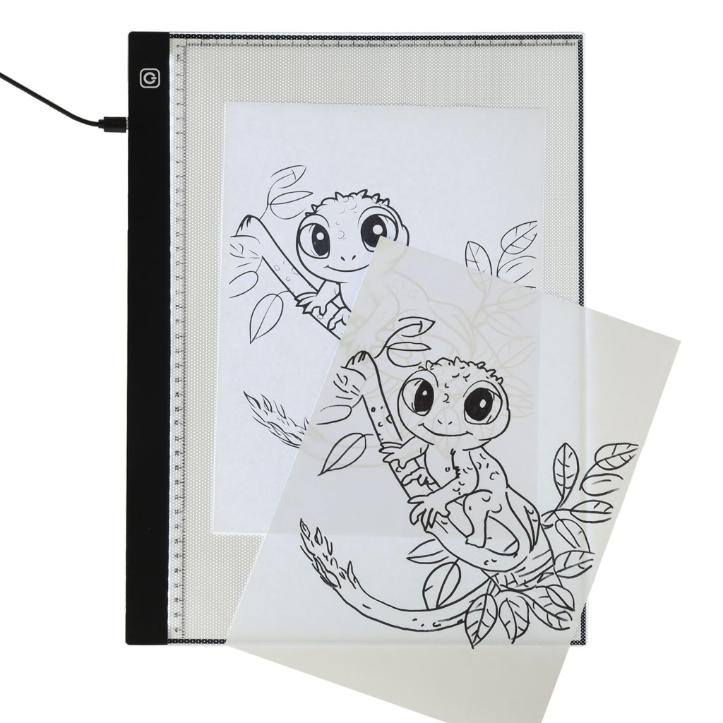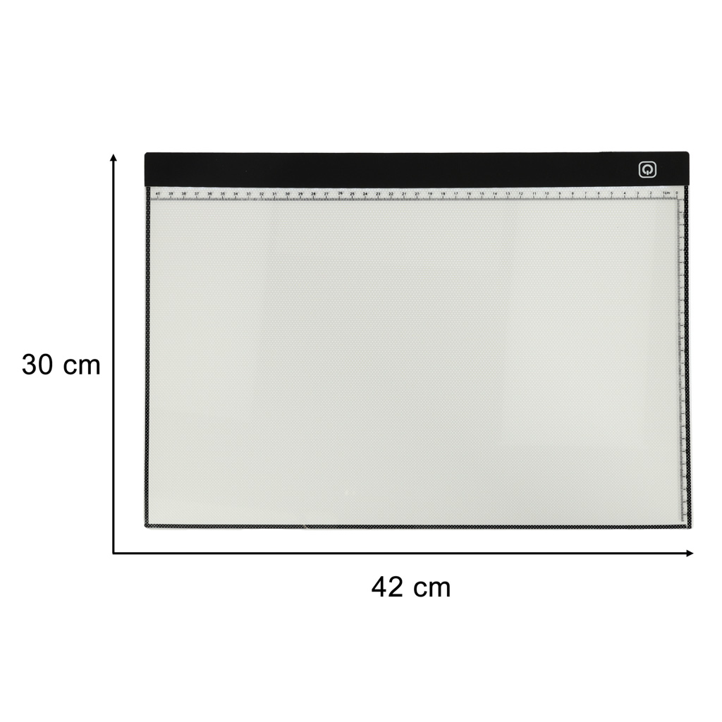 Podświetlana deska kreślarska A3. Dzięki niej sporządzenie wyjątkowych szkiców i rysunków będzie łatwiejsze. Posiada trzy tryby jasności. Zasilanie: USB 5V 2A. Wymiary deski: 42 cm x 30 cm x 0,4 cm.
