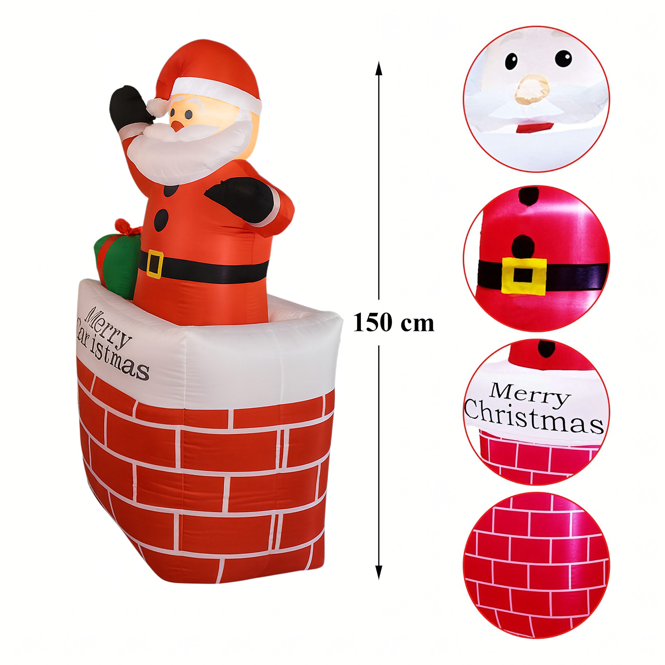 Dmuchany Mikołaj w Kominie Świąteczny Dekoracja Podświetlany Led 150 cm