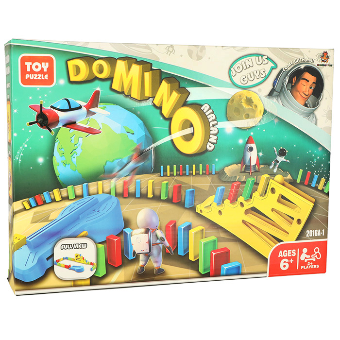 Kreatywny zestaw edukacyjny – domino z wyrzutnią samolotu. Cel jest prosty – ułożyć tor domino w taki sposób, aby samolot mógł poszybować do góry. Zabawa zapewnia mnóstwo kreatywnej rozrywki. Wiek: 6+. Tworzywo: plastik. Wym. samolot: 15,5 x 16,5 x 4,5cm.