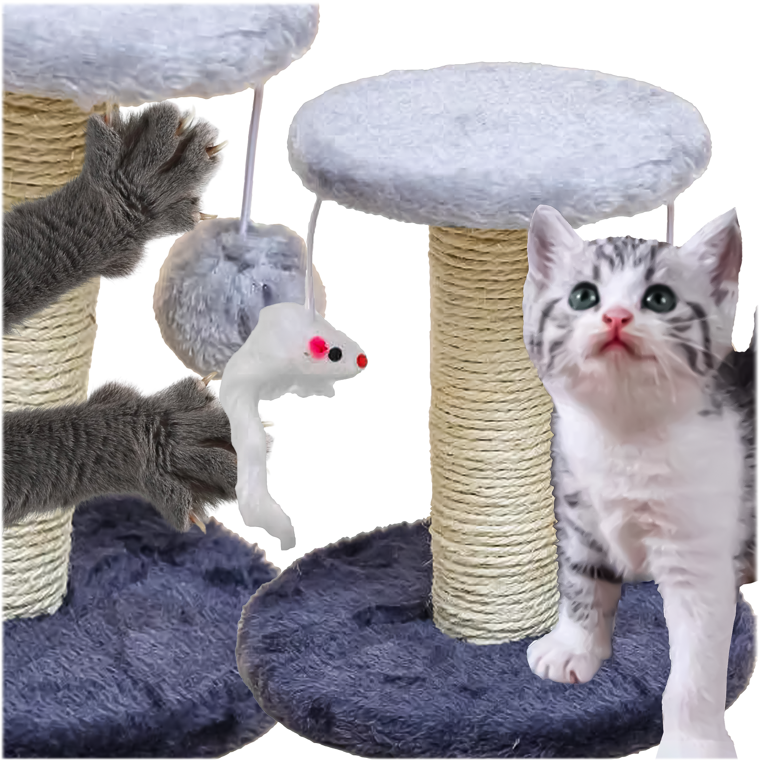 Nasz drapak dla kota w pełni zaspokaja jego aktywną naturę i instynkt pazurkowania. Słupek owinięty naturalną liną sizalową jest idealny dla kotów do ostrzenia pazurów i zapobiega niszczeniu mebli. Miękka, wytrzymała płyta EVA jest doskonała dla kotów do masażu lub pielęgnacji sierści. Co więcej, drapak dla kota ma wiszącą piłkę, którą koty mogą się bawić. Jedną z głównych zalet naszego drapaka dla kota jest wspaniale zaprojektowana drewniana podstawa, która jest stabilna i pokryta pluszem zapewniającym wysoki komfort, dzięki czemu jest idealnym miejscem dla kotów, gdy są zmęczone zabawą. Minimalistyczna konstrukcja oznacza, że można go ustawić bez większego wysiłku i czasu. Dzięki swojemu eleganckiemu wyglądowi drapak dla kota jest idealnym prezentem dla kota i doskonałą ozdobą domu.