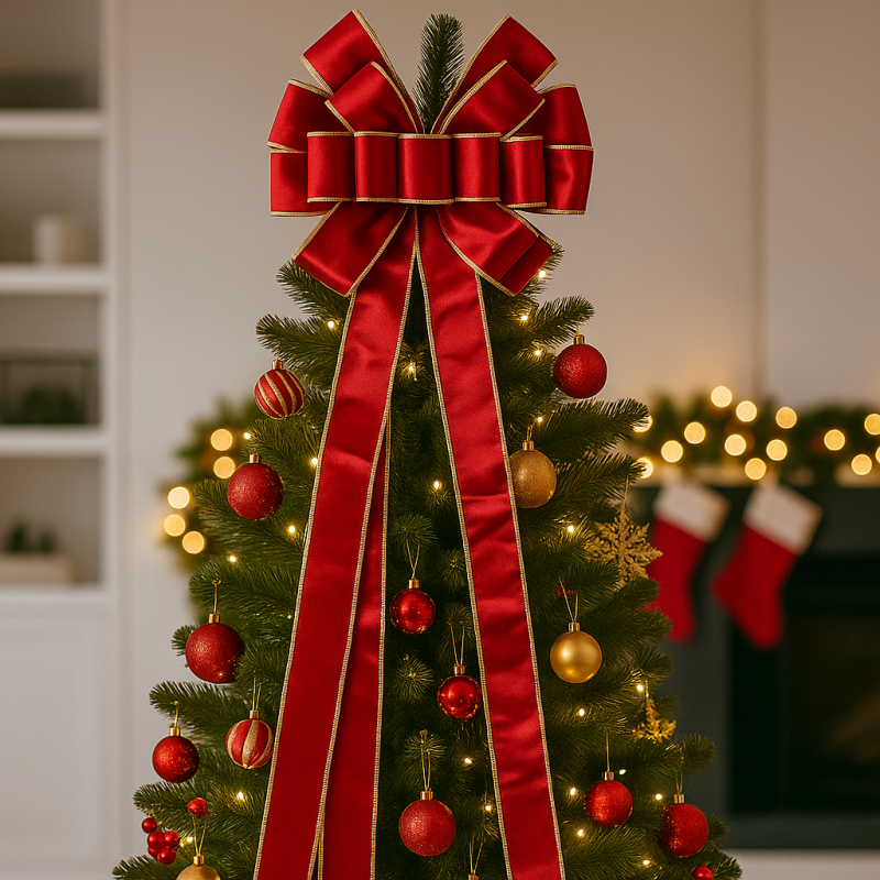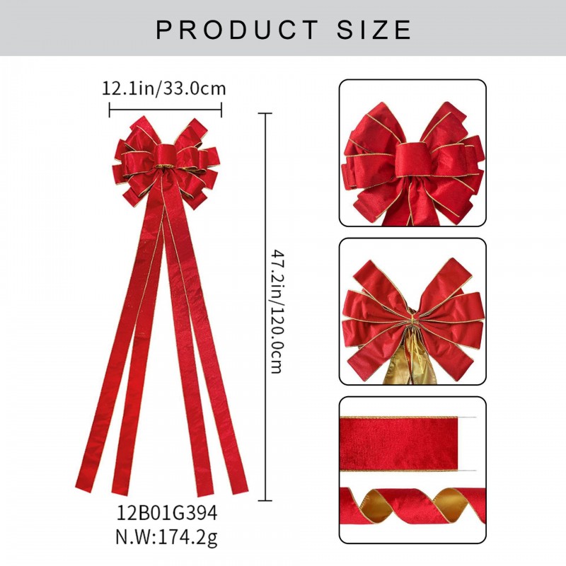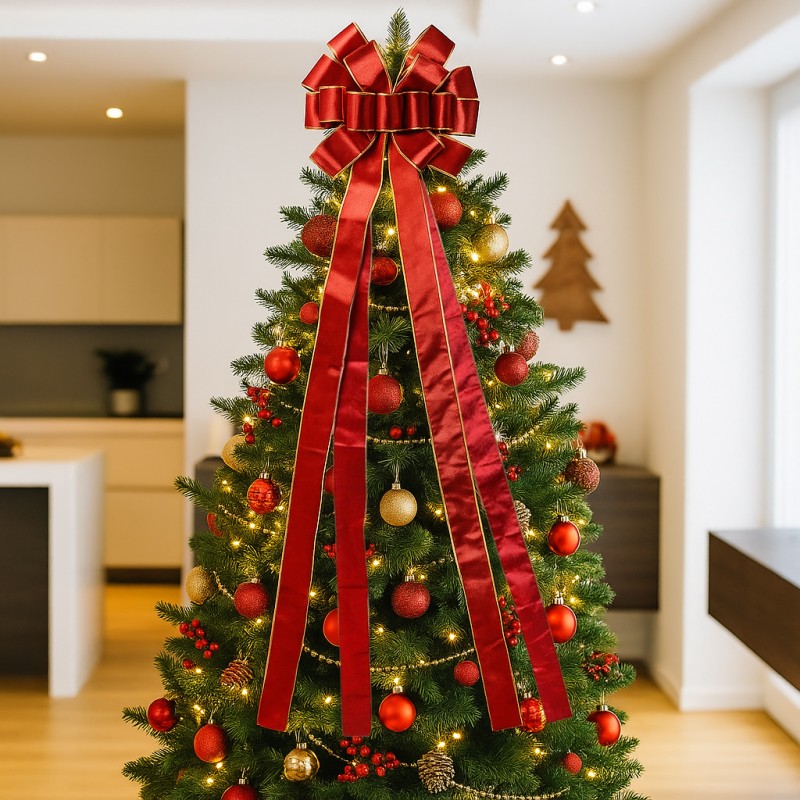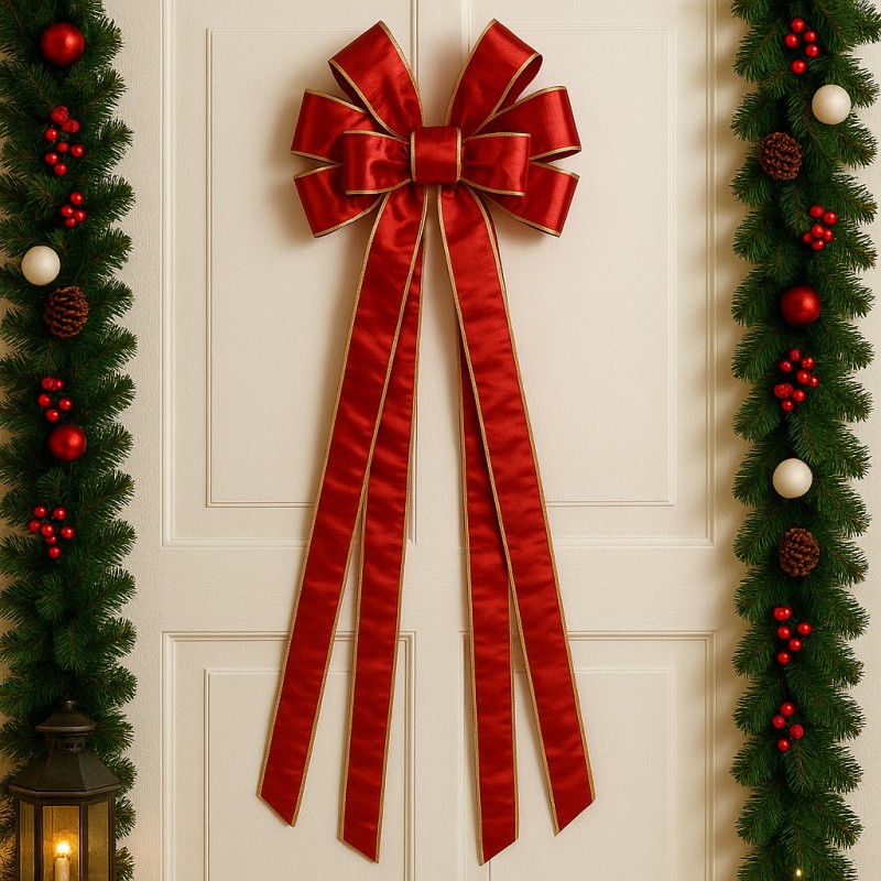 Duża czerwona kokarda XL ozdoba świąteczna na drzwi, choinkę welur 33 x 120cm WOZ44