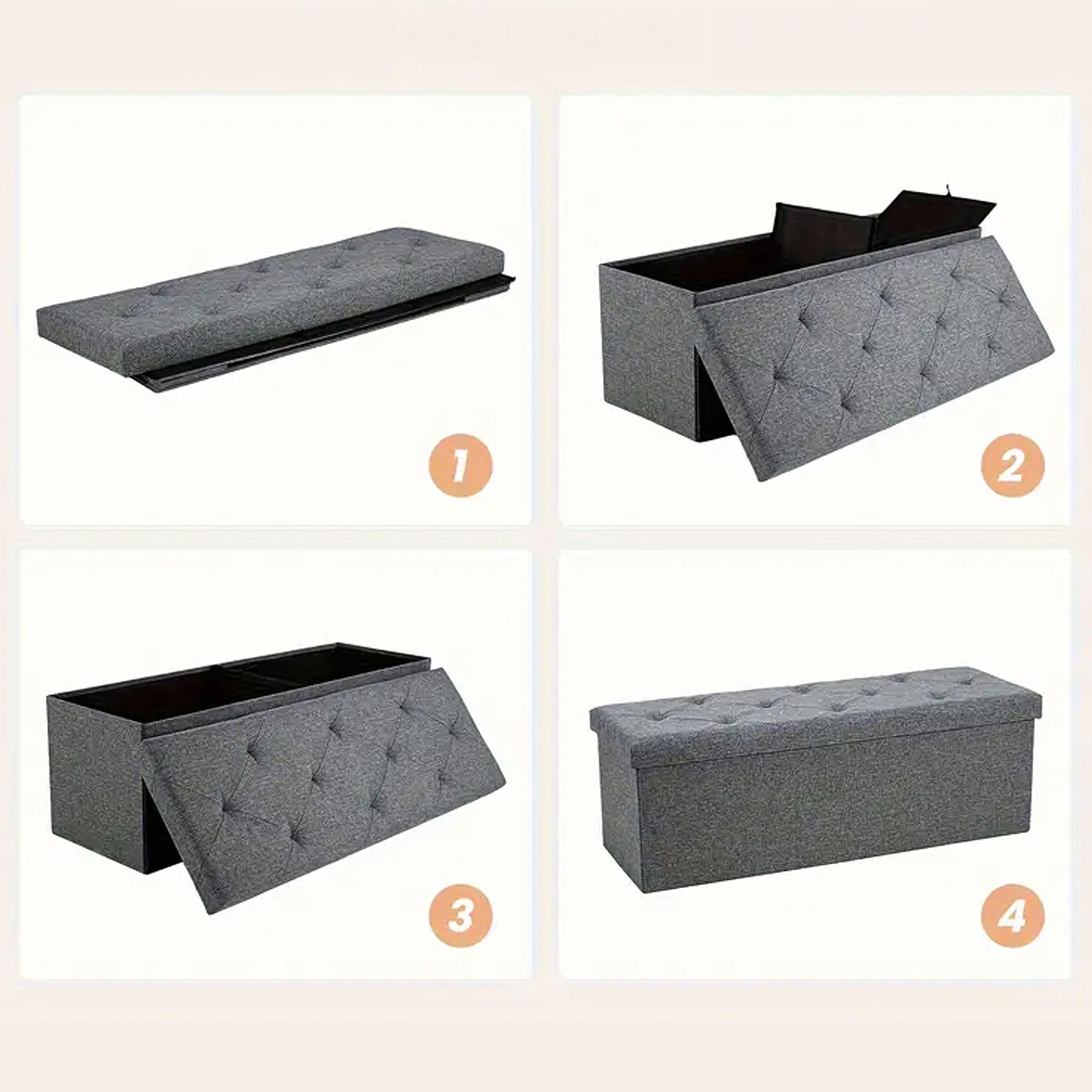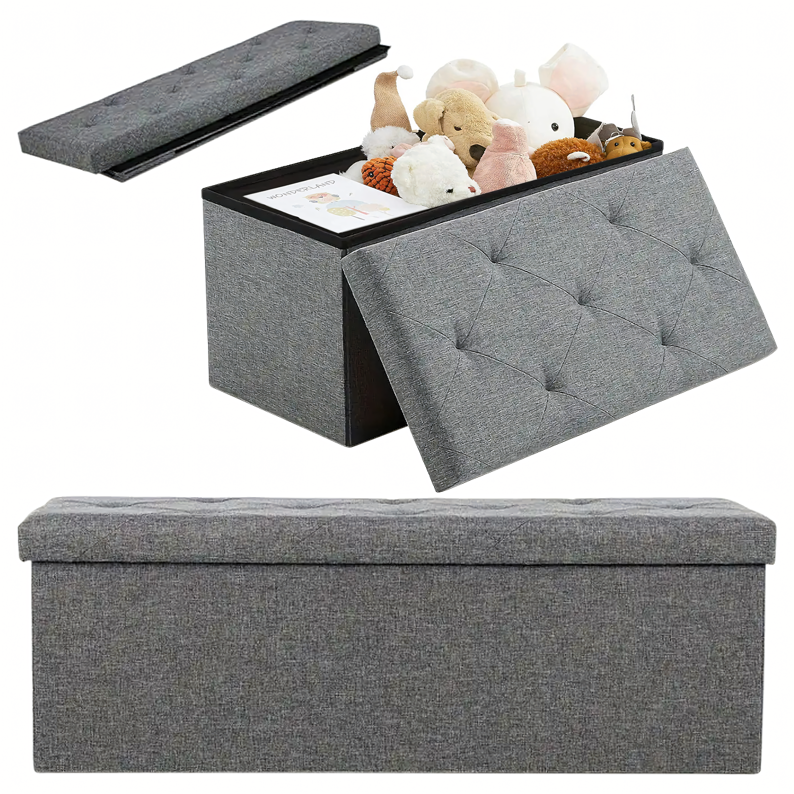 Funkcjonalna i stylowa pufa 3w1 z pojemnym schowkiem (80L), idealna do przechowywania zabawek, ubrań czy pościeli. Stabilna konstrukcja z MDF, wykończona elegancką tkaniną w odcieniu ciemnoszarym. Świetnie sprawdzi się jako siedzisko, podnóżek lub nowoczesny akcent dekoracyjny do każdego wnętrza.