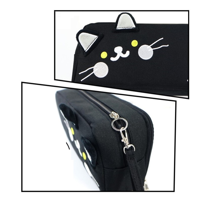 Duży PIÓRNIK wielofunkcyjny dwukomorowy czarny HAPPY CAT PR12