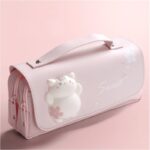 Pojemny, wielofunkcyjny dwukomorowy piórnik.