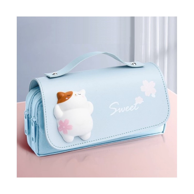 Duży PIÓRNIK wielofunkcyjny dwukomorowy z KOTKIEM niebieski PR14N