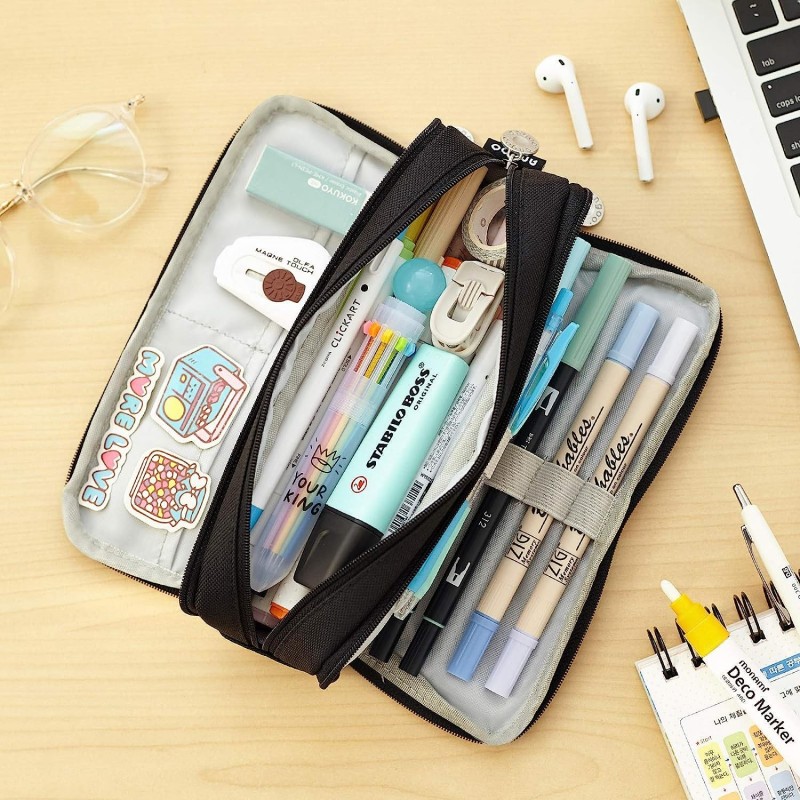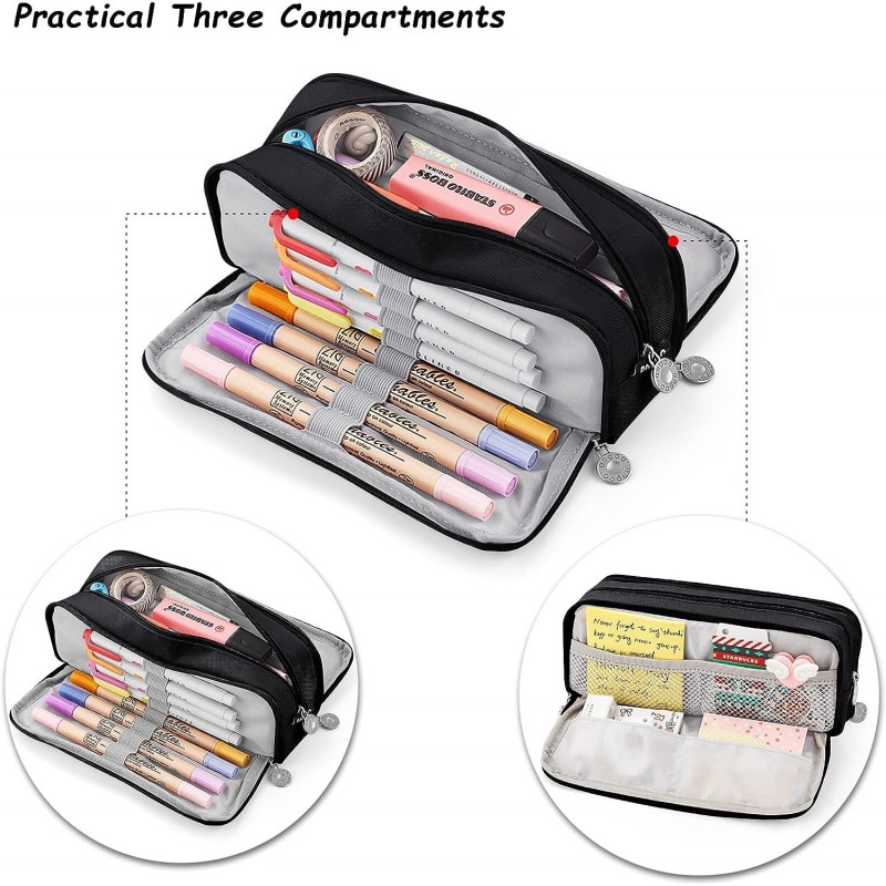 Pojemny, wielofunkcyjny trzykomorowy piórnik