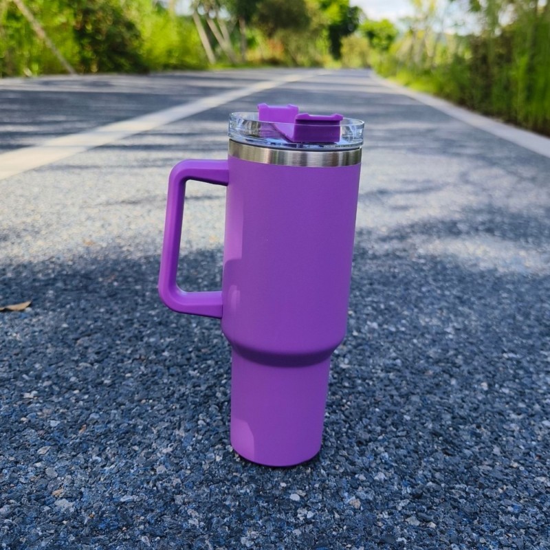 DUŻY POJEMNY KUBEK TERMICZNY Z UCHWYTEM i słomką TERMOS 1L FIOLETOWY CUP11