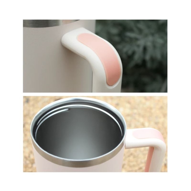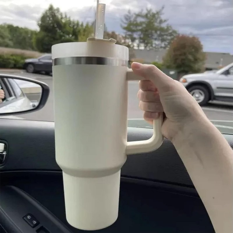 DUŻY POJEMNY KUBEK TERMICZNY Z UCHWYTEM i słomką TERMOS 1L KREMOWY CUP01