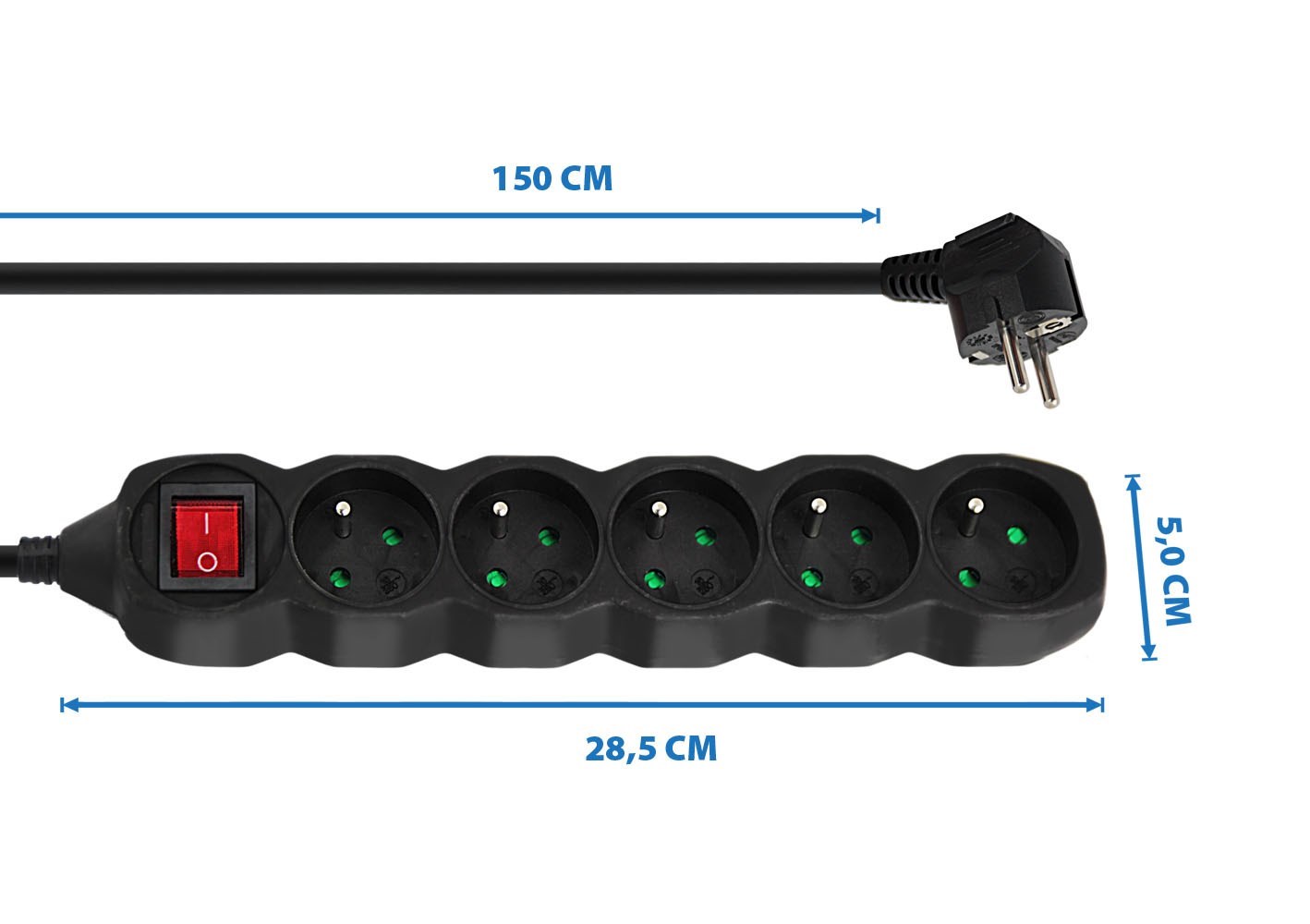 ESPERANZA LISTWA ZASILAJĄCA 5 GN. WYŁĄCZNIK 1.5M CZARNA ELK214K