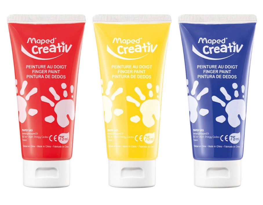 Farby do malowania palcami w walizce Maped 3 kolory szablony naklejki