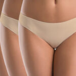 Klasyczny majtki bambusowe w kolorze beżowym, idealne dla kobiet, które są fankami klasyki. Są adresowane do każdej z Pań, niezależnie od wieku, ponieważ ze względu na właściwości włókna bambusowego, chronią przed powstawaniem bakterii i grzybów. Idealnie układają się na ciele, są komfortowe, dlatego też doskonale sprawdzą się do codziennego użytku. Delikatna gumka w pasie sprawia, że majtki bambusowe utrzymują się na odpowiedniej wysokości, nie zsuwając się, ani nie uwierając. Figi posiadają podwójne podszycie bawełniane w okolicy kroku, co zapewnia świeżość przez cały dzień. Są przyjemne dla kobiecego ciała, proste i obszyte wokół ud i w pasie szerszym szwem. Nie należy prać oraz suszyć majtek bambusowych w wirówkach. Takie stringi posłużą na długi okres czasu, dlatego każda kobieta powinna się w nie zaopatrzyć.