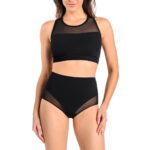 Figi klasyczne z wysokim stanem w kolorze beżowym. Powabne figi damskie z przezroczystej i miękkiej w dotyku siatki połączonej z elegancką i delikatną koronką, wszytą z przodu po obu stronach. W środek wkomponowana jest siateczka, która swymi pionowymi cięciami modeluje sylwetkę. Wokół ud znajdują się mocne wycięcia, które optycznie wydłużają nogi. W okolicach kroku wszyta jest delikatna bawełna absorbująca wilgoć i dająca komfort noszenia. W pasie i wokół nóg zastosowano wykończenia z cienkiej delikatnej gumki. Tył wykonany jest z siatki, co zachęca, uwydatnia, a zarazem kryje. Figi są niezwykle efektowne i chętnie noszone przez kobiety lubiące dobrze wyglądać. Będą doskonałym pomysłem na prezent dla koleżanki lub mamy.