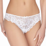 Wysokie figi damskie zabudowane na biodrach. Wykonane z gładkiej mikrofibry i delikatnej koronki.