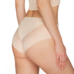 Wygodne, bawełniane majteczki o fasonie midi z koronką umieszczoną zarówno po bokach, jak i nad pośladkami. Idealne połączenie kobiecości i pełnego komfortu.