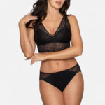 Efektowne połączenie gładkiej bawełny z lekkim tiulem. Boczne prześwitujące elementy wysmuklają optycznie uda oraz zaokrąglają biodra. Delikatna, a jednocześnie wytrzymała bawełna, pozwala skórze oddychać i czuć się komfortowo przez cały dzień.