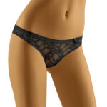 Komfortowe figi o nieco wyższym kroju z elegancko zdobionym przodem. Uda z gładkim wykończeniem, tył również gładki. Rejon talii muśnięty delikatną, piękną koronką.