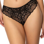 Czarne figi Estelle to doskonałe połączenie elegancji, kobiecości i wygody. Wykonane z delikatnej koronki o kwiatowym wzorze, podkreślają kobiece kształty, nadając im zmysłowego charakteru. Przód zdobi subtelna siateczka, która dodaje lekkości i romantycznego uroku. Tył fig wyróżnia się dekoracyjnym wycięciem oraz koronkowymi wstawkami, które dodają figlarności i eksponują sylwetkę w atrakcyjny sposób. Precyzyjnie dobrane materiały zapewniają wysoki komfort noszenia, a elastyczne wykończenie idealnie dopasowuje się do ciała. Figi Estelle to bielizna, która spełnia wszystkie oczekiwania nowoczesnych kobiet, jest zarówno piękna, jak i wygodna. Wybierz je, by podkreślić swoją kobiecość i czuć się wyjątkowo każdego dnia!