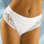 Efektowne figi, które pracują nad Twoim brzuszkiem. Z podwyższonym stanem, płaskimi szwami i fasonem, który delikatnie uciska i ładnie modeluje linię ciała. Ozdobny haft dodaje lekkości, zaś półprześwitujące wstawki przy udach optycznie wydłużają nogi.