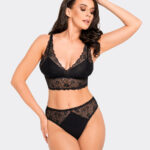 Czarne, modelujące ciało figi o wyższym kroju, wykończone u góry elastyczną taśmą. Gładkie, przyjemne w dotyku, wpływają na poprawę wyglądu strefy brzucha.