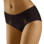 Modelująco-wyszczuplające figi z wysokiej stanem. Uszyte ze ściągającej tkaniny, doskonale profilują sylwetkę, optycznie usuwając niedoskonałości figury. Zaletą są pionowe, długie szwy, które dodatkowo wyszczuplają kobiecą figurę. Tył wykonany z siateczki, która unosi pośladki. Majteczki zakończone silikonową taśmą, która zapobiega zsuwaniu się.